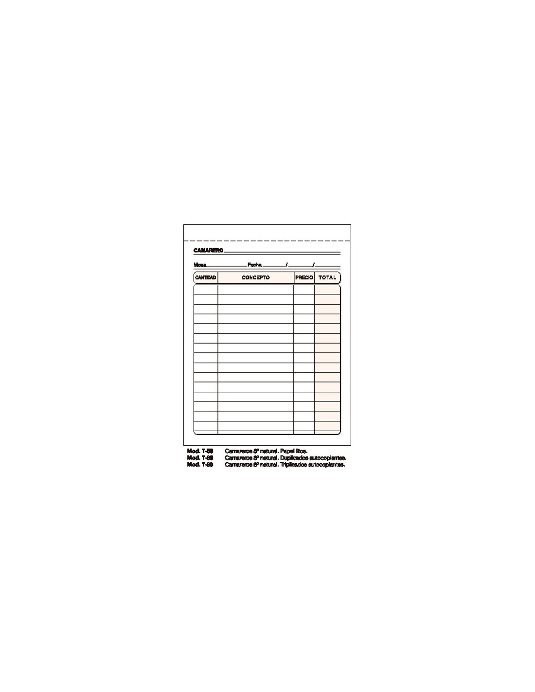 TALONARIO LOAN T88 CAMAREROS OCTAVO NATURAL DUPLICADO AUTOCOPITATIVO EUSKERA