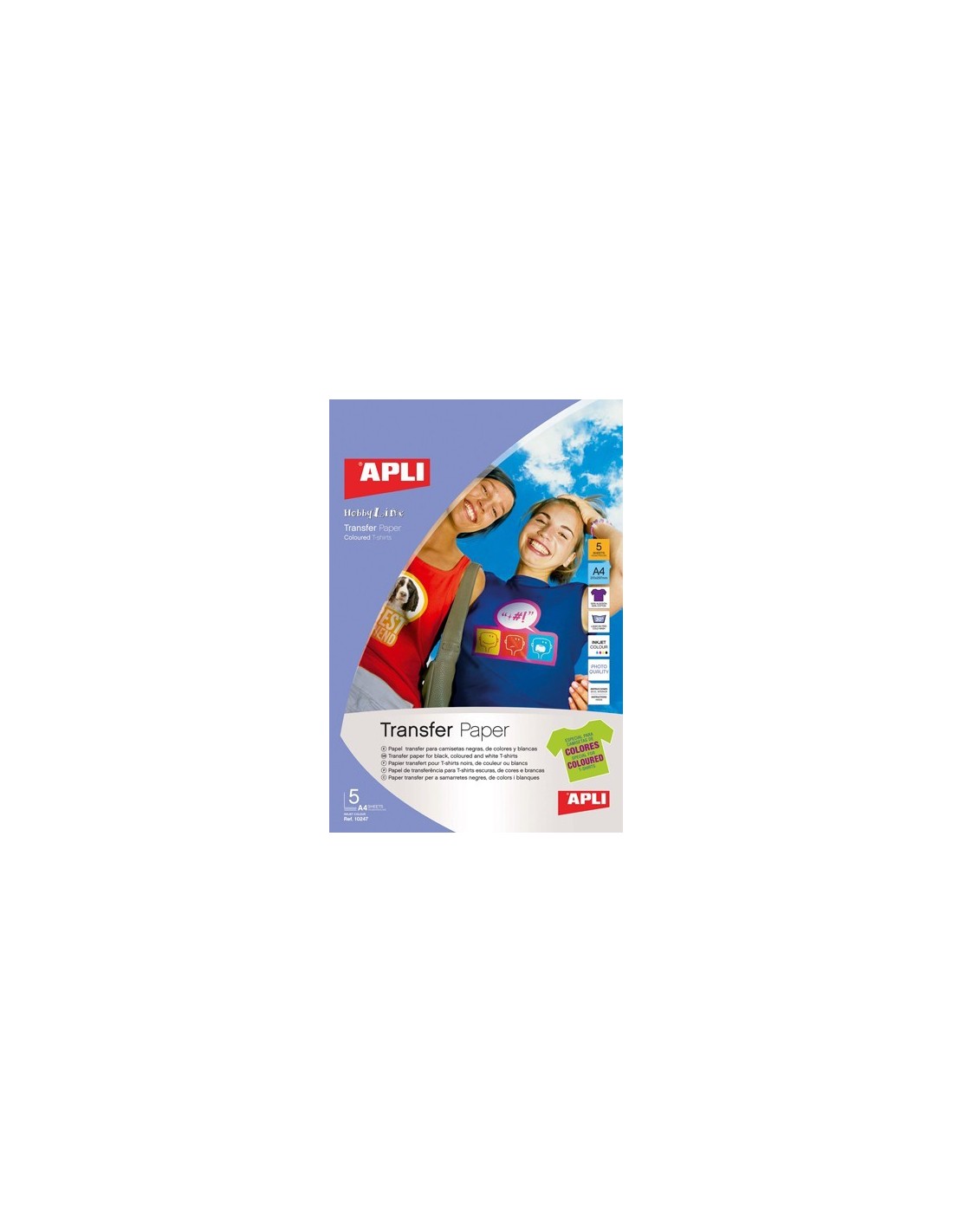 PAPEL APLI TRANSFERINKJET COLOR SHIRT OSCURA 5 HOJAS