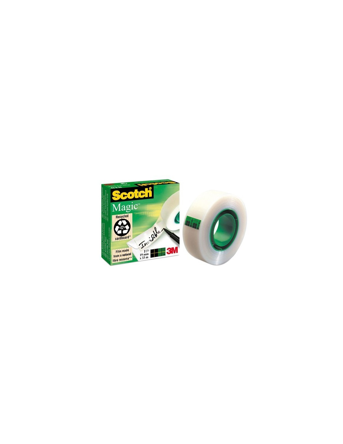 Cinta adhesiva invisible Magic. 33 m x 19 mm.La cinta es completamente transparente e invisible una vez aplicada, fácil de cortar y manejar. No amarillea y tampoco se despega con el paso del tiempo. Se puede escribir sobre ella. Ideal para la oficina, confiere un acabado profesional a cualquier trab