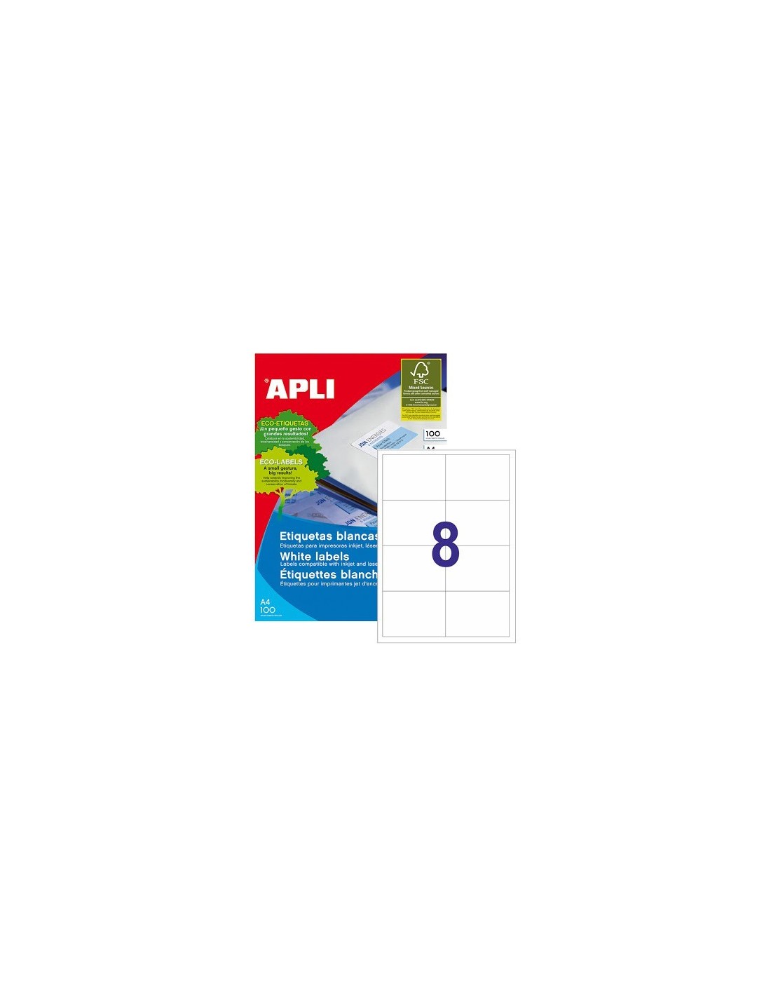 ETIQUETAS APLI INKJET/LASER/COPY DA4 BLANCO 01291 97X67,7MM 800 UND