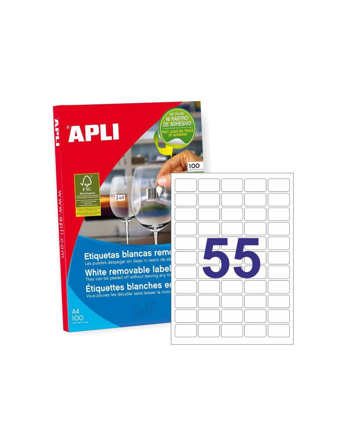 ETIQUETAS APLI INKJET/LASER/COPY DA4 BLANCO REMOVIBLE 03051 36,8X23,8MM 5500 UND