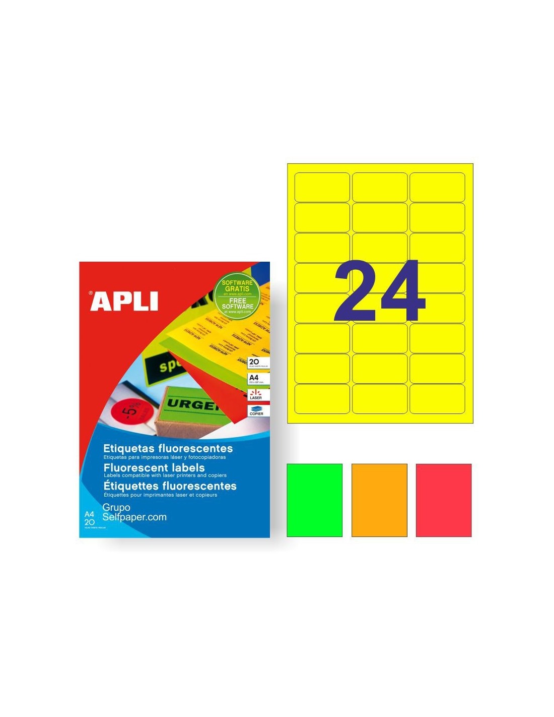 ETIQUETAS APLI LASER/COPY FLUORESCENTE 2870 64X33,9MM FLUOR AMARILLO 20 HOJAS