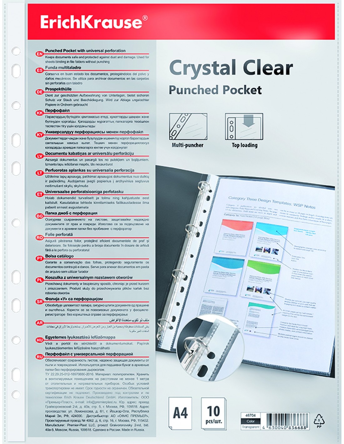 FUNDAS MULTITALADRO ERICHKRAUSE A4 CRYSAL CLEAR 10 FUNDAS