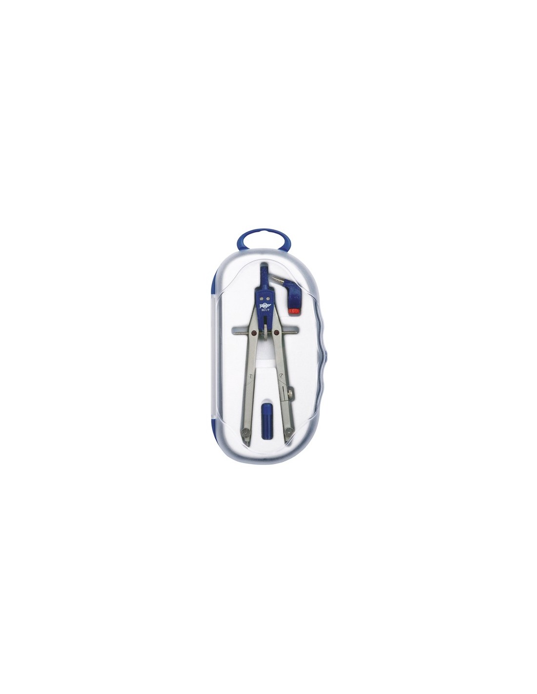 Compás serie Blue Line 301 Sin alargaderaCompás micrométrico con ambos brazos articulados. Longitud del compás 165 mm. Puede hacer circunferencias hasta 280 mm y con la alargadera de hasta 520 mm. Presentado en lujoso estuche de plástico. Con adaptador universal y caja de minas. 100% reciclable.