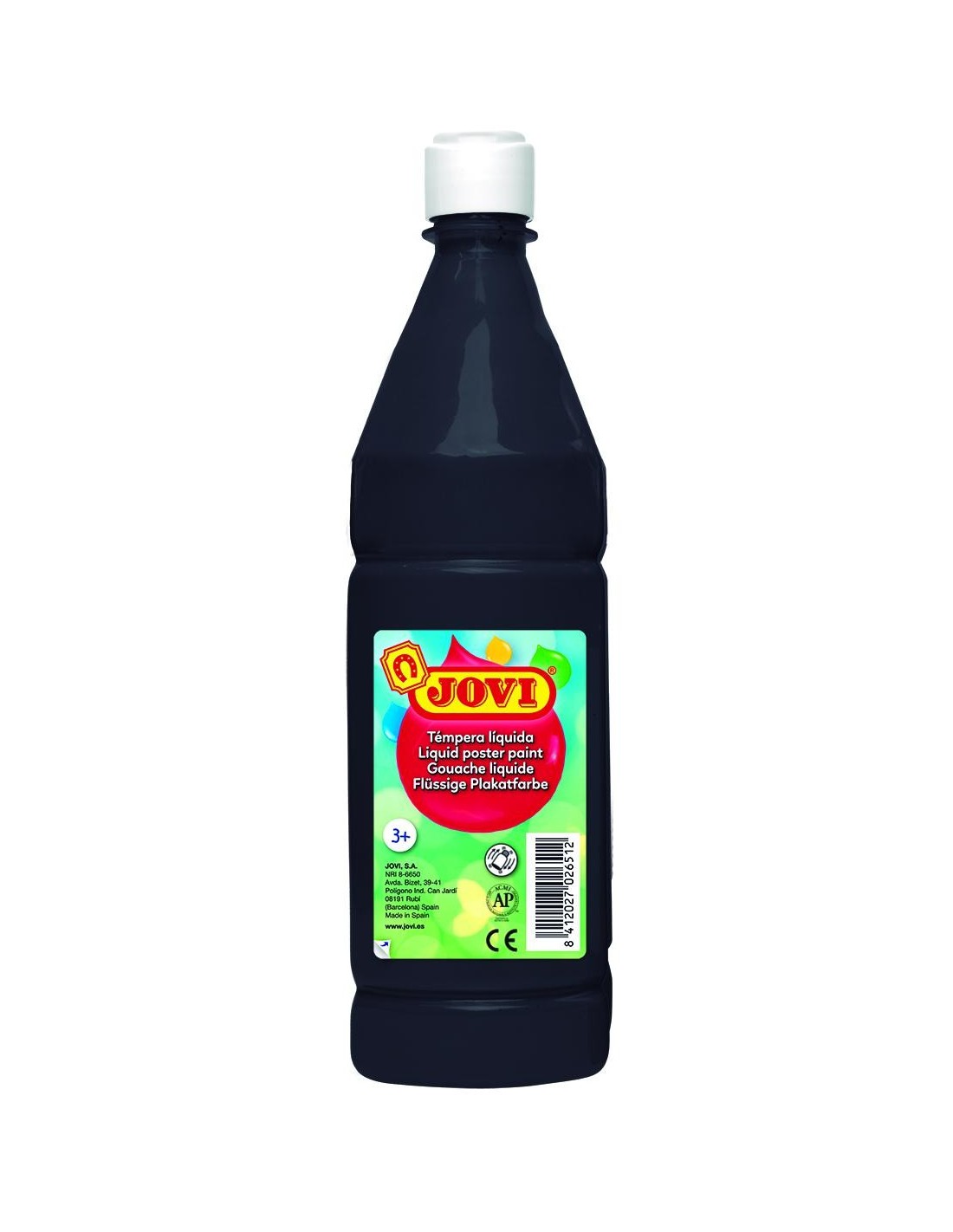 Témpera líquida Botella unicolor 1000 c.c NegroTémpera líquida con tapón dosificador, lista para utilizar. Amplio surtido de colores. Apta para uso escolar.